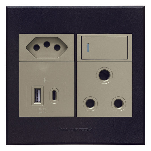 Flush Mounted SSO (1x16A 3PIN / 1 x 3PIN Euro / 1 x USB Type A outlet) - Dena Q